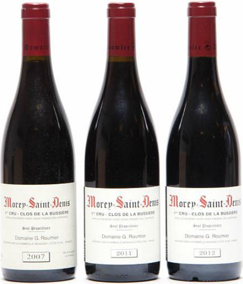 1 bt. Morey Saint Denis 1. Cru "Clos de la Bussiére", Domaine Georges Roumier 2012 A (hf/in). etc. Total 3 bts