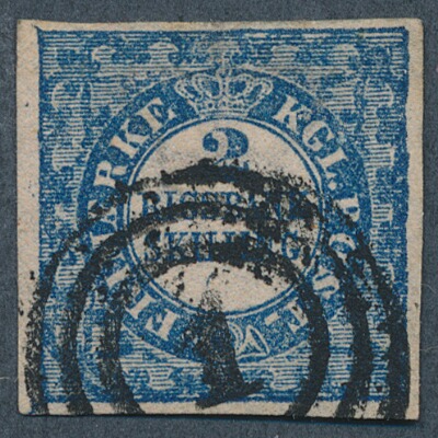 1851. 2 RBS Thiele. Plate II, no. 60. Type 2 FOOT OF 2 NEARLY DISJOINED. Very fine copy. Opinion Møller