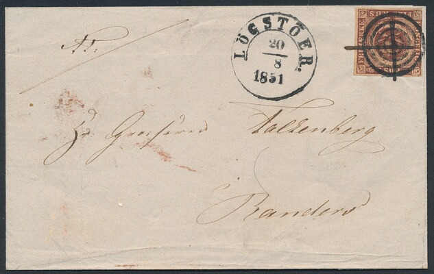 1851. 4 RBS Ferslew. Plate I, nr.74. Cover. Certificate Vagn Jensen.