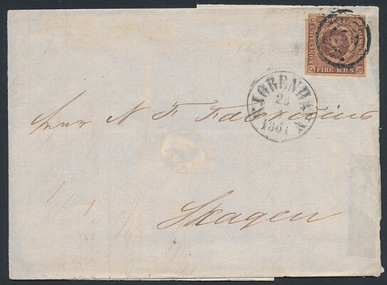 1851. 4 RBS Ferslew. Plate II, no. 36. APRIL-COVER from København to Skagen 25.4.1851. Cert. Møller BPP