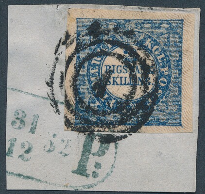 1852. 2 RBS Thiele. Large margin stamps on small piece. Certificate Nielsen.