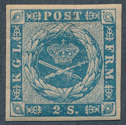 1854. 2 Sk. blue. SUPERB NH copy. Cert. Møller