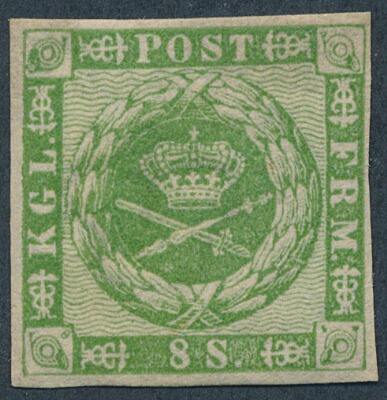 1858. 8 sk. green. Unused with original gum. Scarce stamp. AFA 6600. Cert. Møller