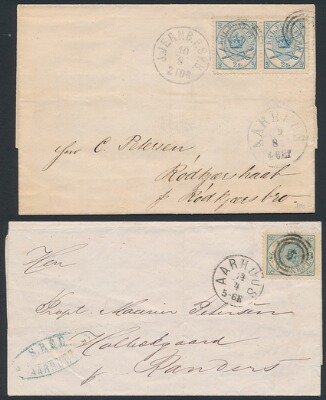 1864. 2 sk. blue. Single on PRINTED MATTER + pair on domestic cover