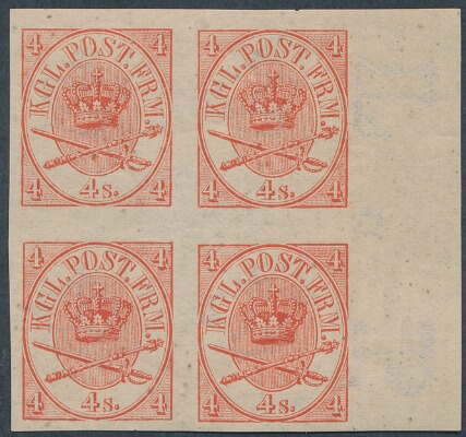 IMPERFORATED block of 4 with right margin. The 2 lower stamps are NH
