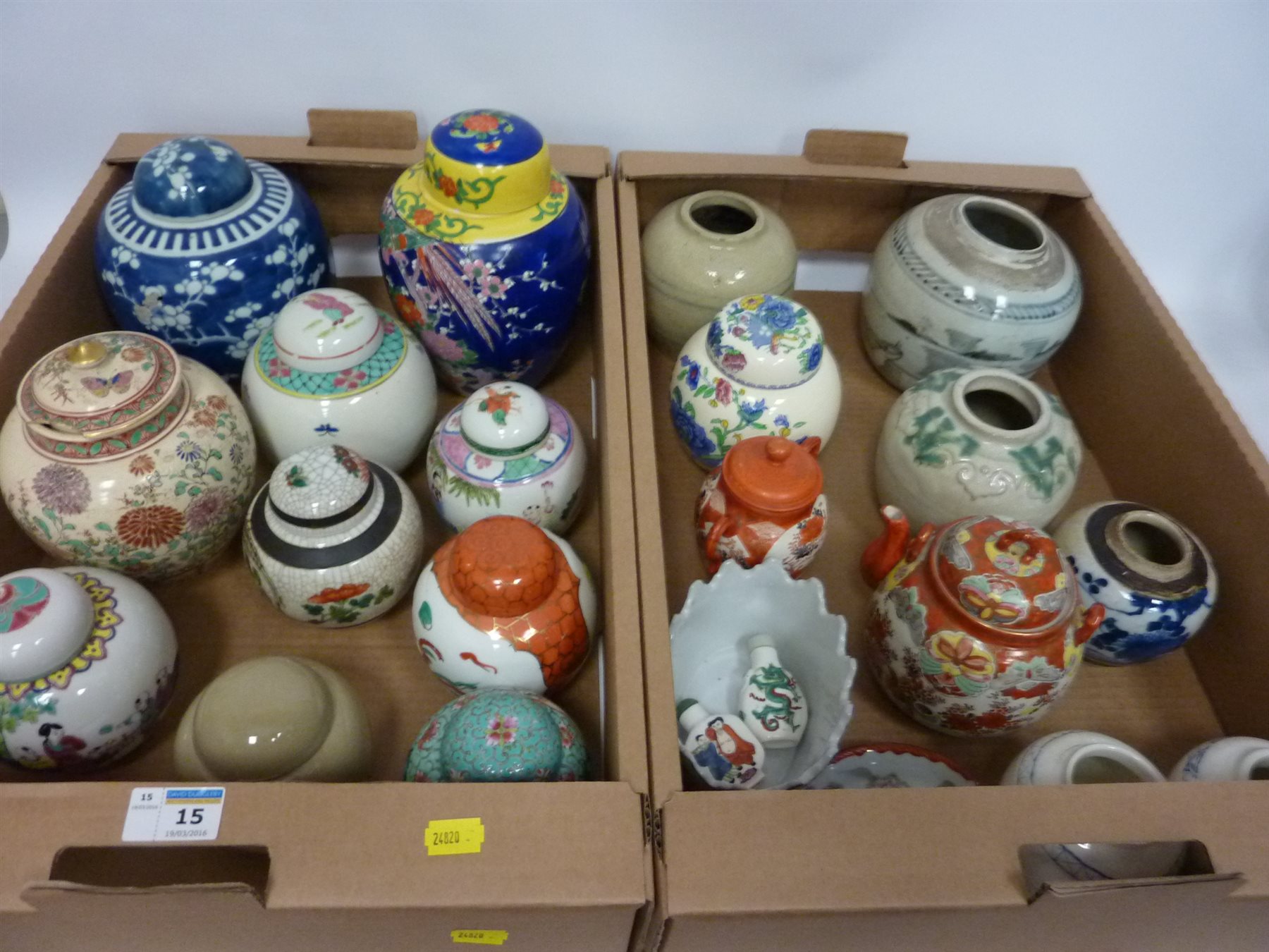 19th century and later oriental ginger jars and other decorative items in two boxes