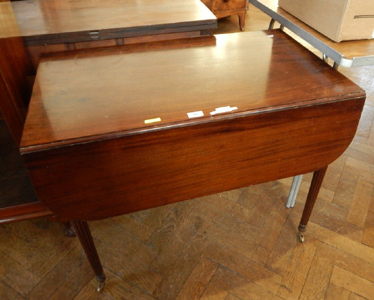 rectangular, one real and one dummy frieze drawer, tapering and reeded legs, brass caps and castors, 90cm