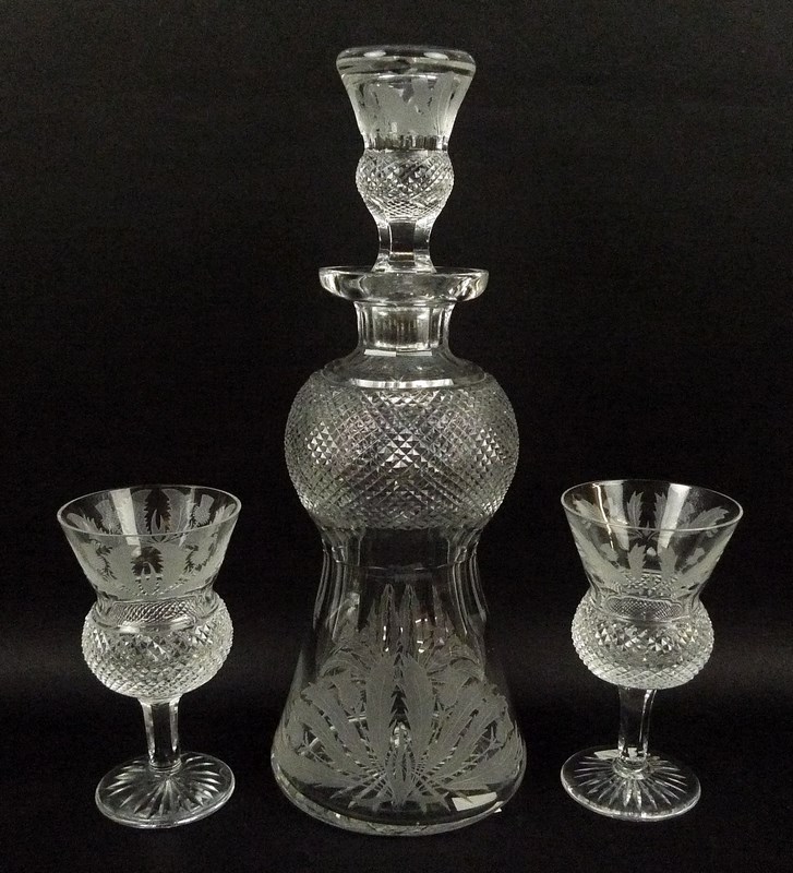 1A set of Edinburgh Crystal, thistle shaped glassware, engraved with thistles and leaves