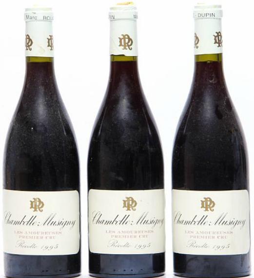 3 bts. Chambolle Musigny 1. Cru "Les Amoureuses", Marc Rougeot 1995 A-A/B (bn)
