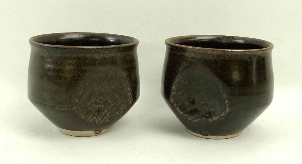 4A near pair of Kenneth Quick Studio Pottery cups, mid 20th century
