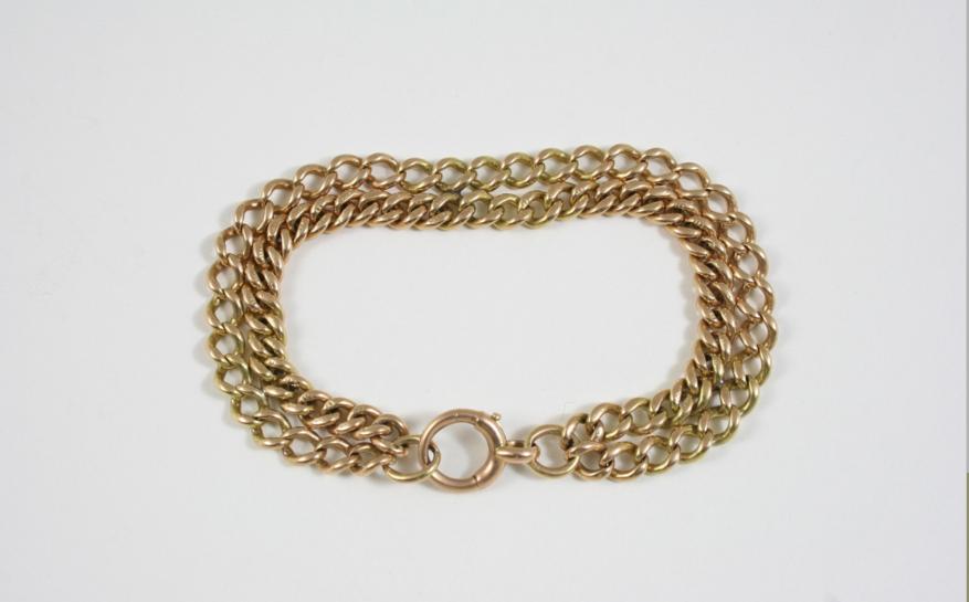 A 15CT. GOLD TWO ROW CURB LINK BRACELET