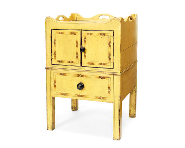A 19th century and later faux bamboo polychrome decorated tray top commode