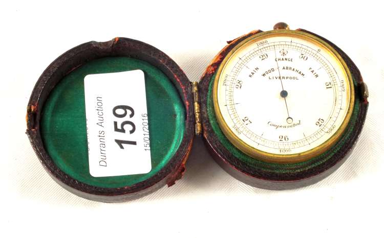 A 19th Century cased compensated pocket barometer by Wood, late Abraham, Liverpool