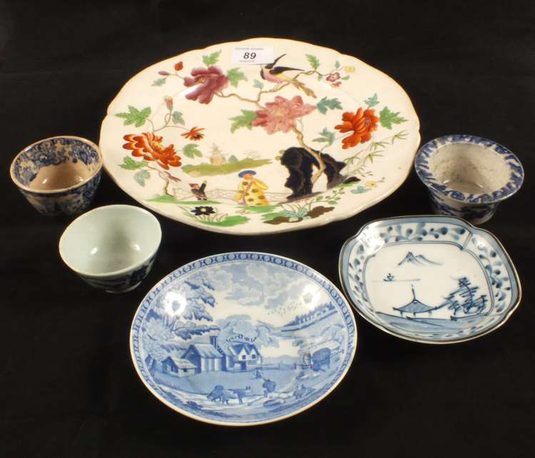 A 19th Century creamware plate (restored) and other china