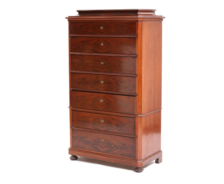A 19th century late Empire mahogany chiffoniere, front with seven drawers