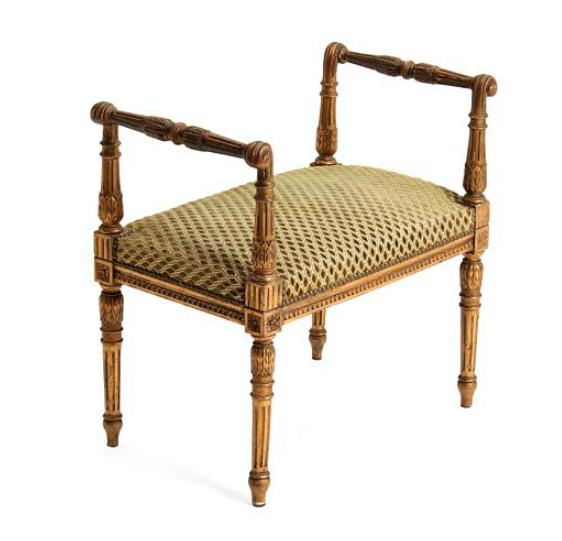 A 19th century Louis XVI style giltwood stool, adorned with carvings