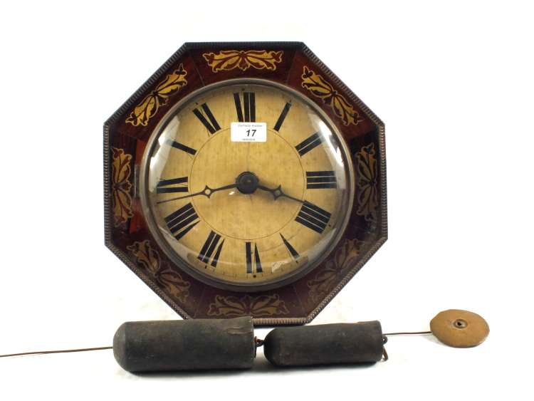A 19th Century octagonal Rosewood wall clock with Brass inlays and bell