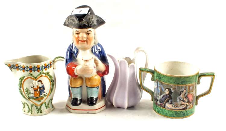 A 19th Century Polychrome Toby jug and three other pieces of china