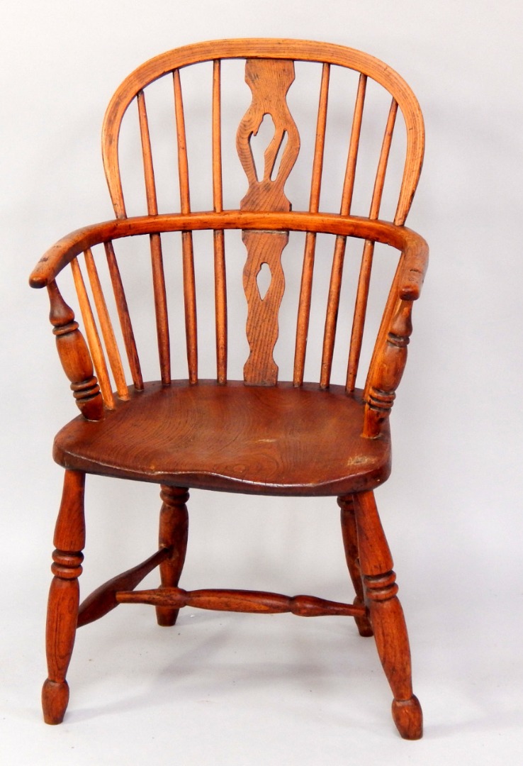 wheel back with solid seat, and turned legs united by a crinoline stretcher