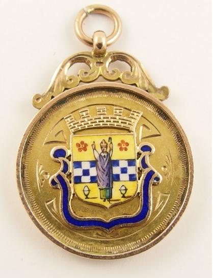 A 9ct enamelled medallion inscribed LOCABU cup winners St. Mirins 1921 - 1922