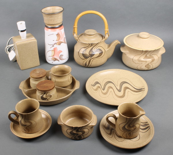 A Barbara Davidson studio vase 12", a studio service comprising 6 mugs