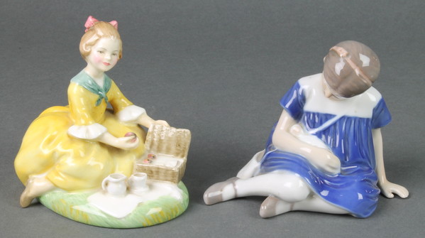 A Bing and Grundle figure of a seated girl with doll 1526 4", a Royal Doulton figure - Picnic HN2308 4"