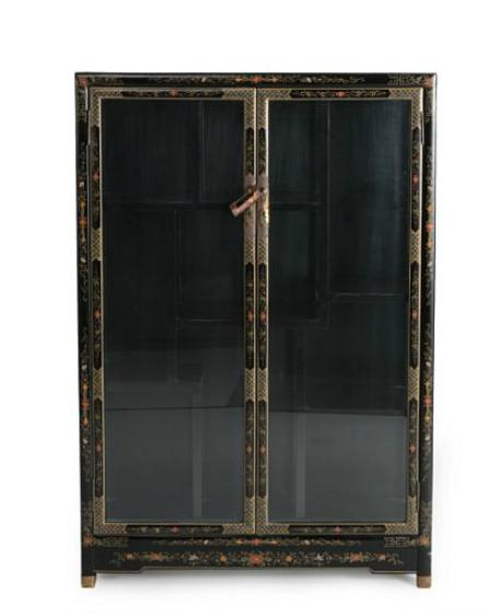 A black lacquered Japanese style display cabinet