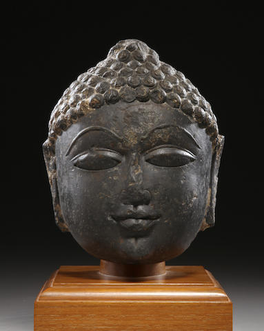 His charming face with a prominent chin, rounded cheeks, almond-shaped eyes, and high arched brows