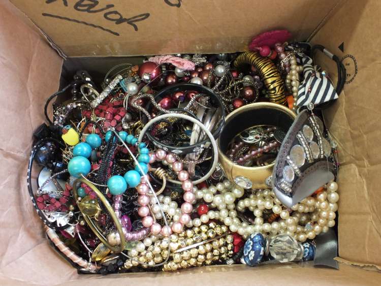 A box of various costume jewellery