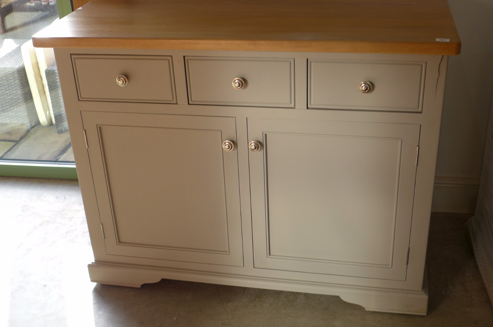 A Bramblecrest Windsor small two door three drawer light grey sideboard