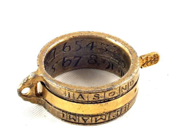 A Brass ring sundial stamped 'To H.S.THON ANNO 1721'