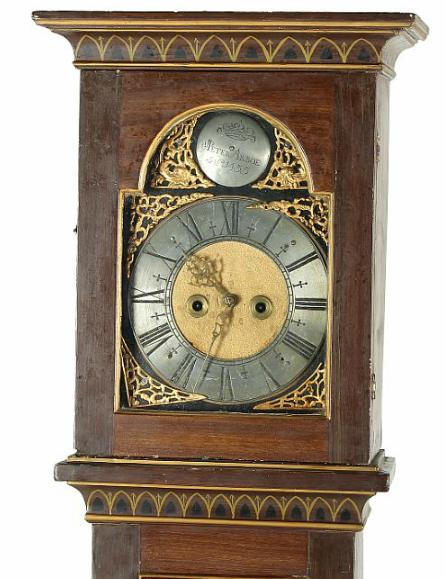 A brown painted longcase clock with pewter timechapter,