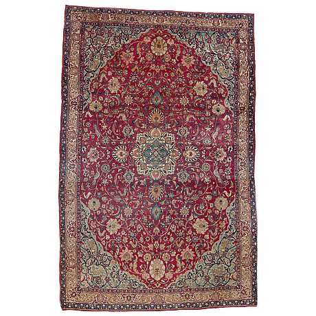 A CARPET, A SEMI-ANTIQUE ESFAHAN PART SILK, CA 350,5 X 233,5 CM.