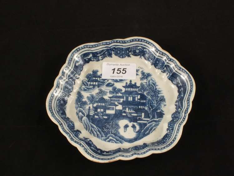 A Caughley hexagonal Chinoiserie dish, impressed Salopian mark