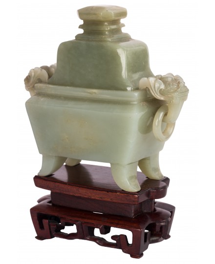 A CELADON JADE VESSEL AND COVER, QING DYNASTY