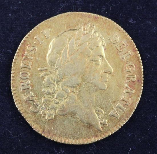 A Charles II gold guinea, 1668, near VF, with attractive toning