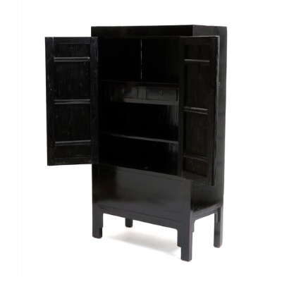 A Chinese blacklacquered elm wood Shan Xi cabinet