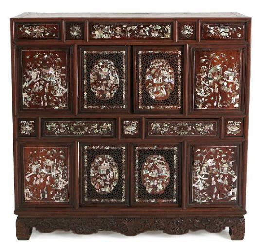 A Chinese hardwood cabinet with mother of pearl inlays.