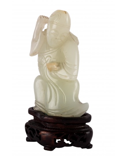 A CHINESE PALE CELADON JADE FIGURE OF A SAGE, QING DYNASTY