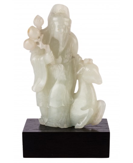 A CHINESE PALE CELADON JADE GROUP OF SHOU LAO AND DEER, QING DYNASTY, 1644-1911