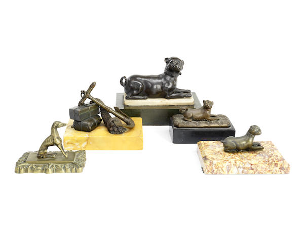 A collection of five 19th century bronze paperweights