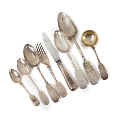 Various makers, among others a serving spoon by Alexander Kordes, St. Petersburg 1857. (25)