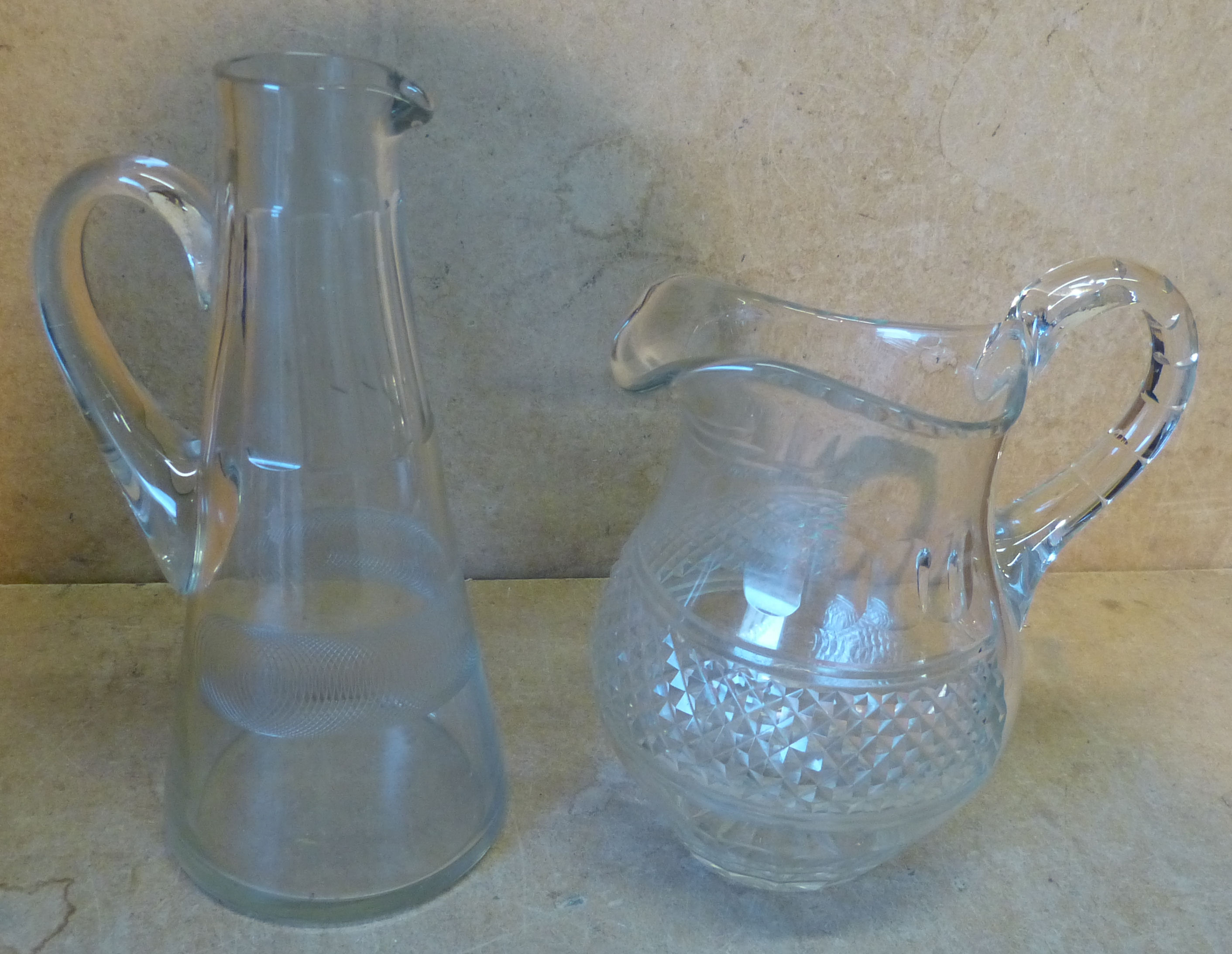 A Cut Glass Bulbous Water Jug having thumb pattern and star cut decoration