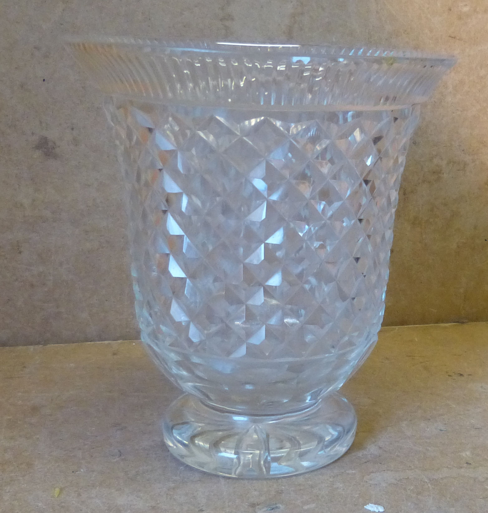A Cut Glass Round Trumpet Shape Vase having tooth cut rim with star cut decoration