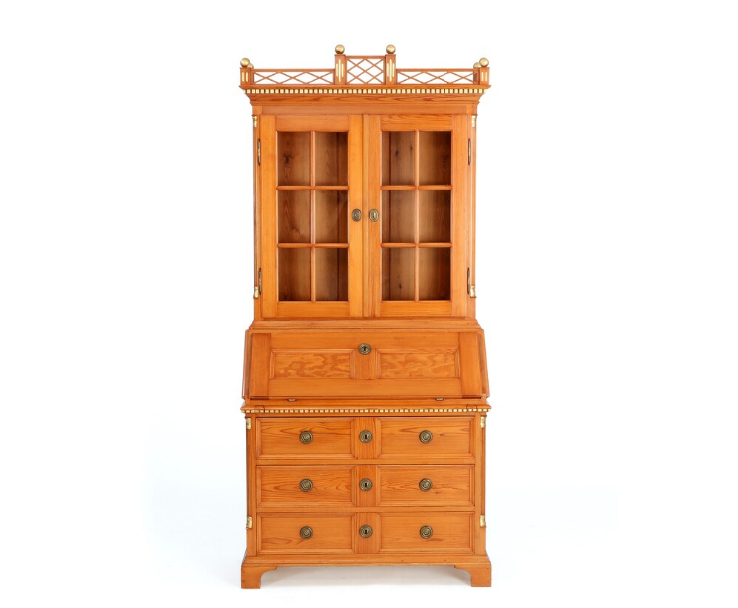 A Danish Louis XVI style pinewood bureau; partially gilt