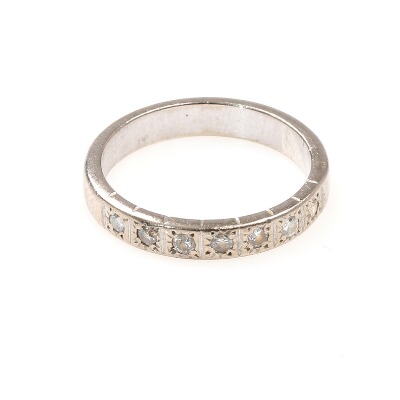 with seven brilliant-cut diamonds totalling app. 0.14 ct., mounted in 14k white gold. Weight app. 4 g. Size 54.5.