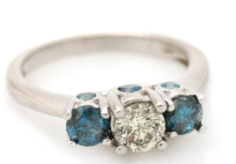 weighing app. 0.50 ct. flanked by eight brilliant-cut diamonds, mounted in 14k white gold. Size 55.