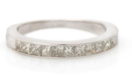 totalling app. 0.75 ct., mounted in 14k white gold. Size 54.5.