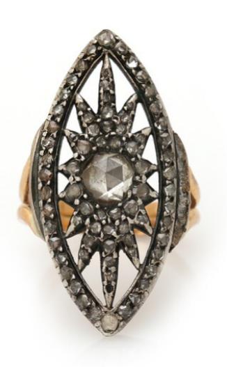 A diamond ring set with numerous rose-cut diamonds