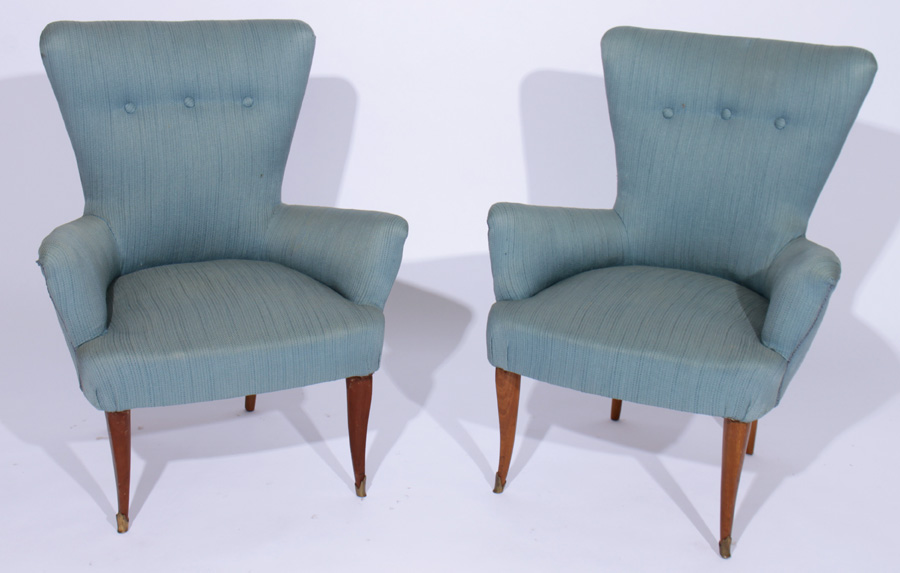 A diminutive pair of Italian upholstered salon chairs